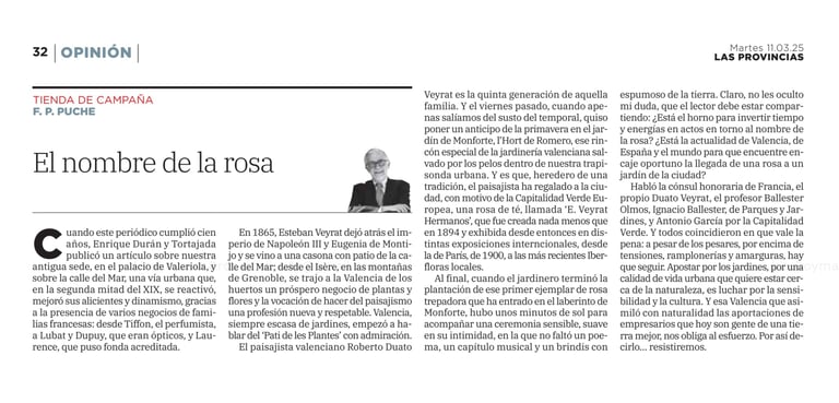 Los jardines de Monforte plantan la Rosa “E. Veyrat Hermanos”, dentro del marco de València Capital Verde Europea 2024. La donación ha sido realizada por los hermanos Veyrat y supone un hito en la preservación de especies vegetales con relevancia histórica.