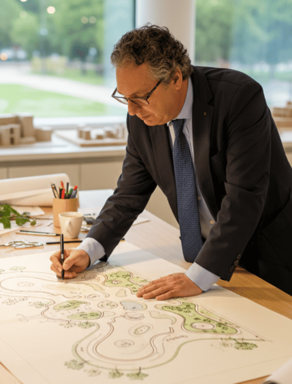 I work with architects, engineers, graphic designers, botanists, and construction specialists, which allows me to approach each project with a comprehensive vision, taking care of every detail from initial planning to final execution.
