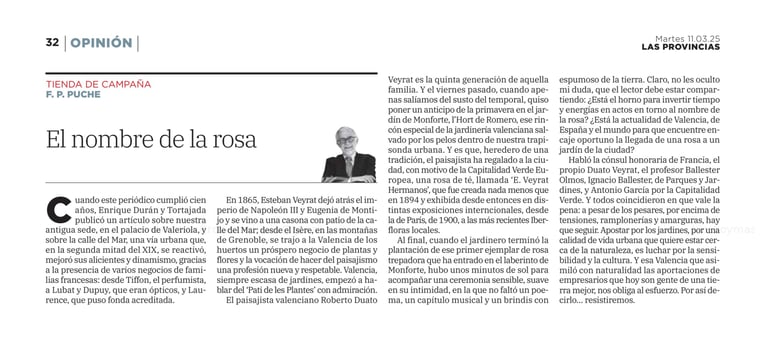 VALENCIA RECEIVES DONATION OF THE HISTORIC “E. VEYRAT HERMANOS” ROSE FOR THE MONFORTE GARDEN.