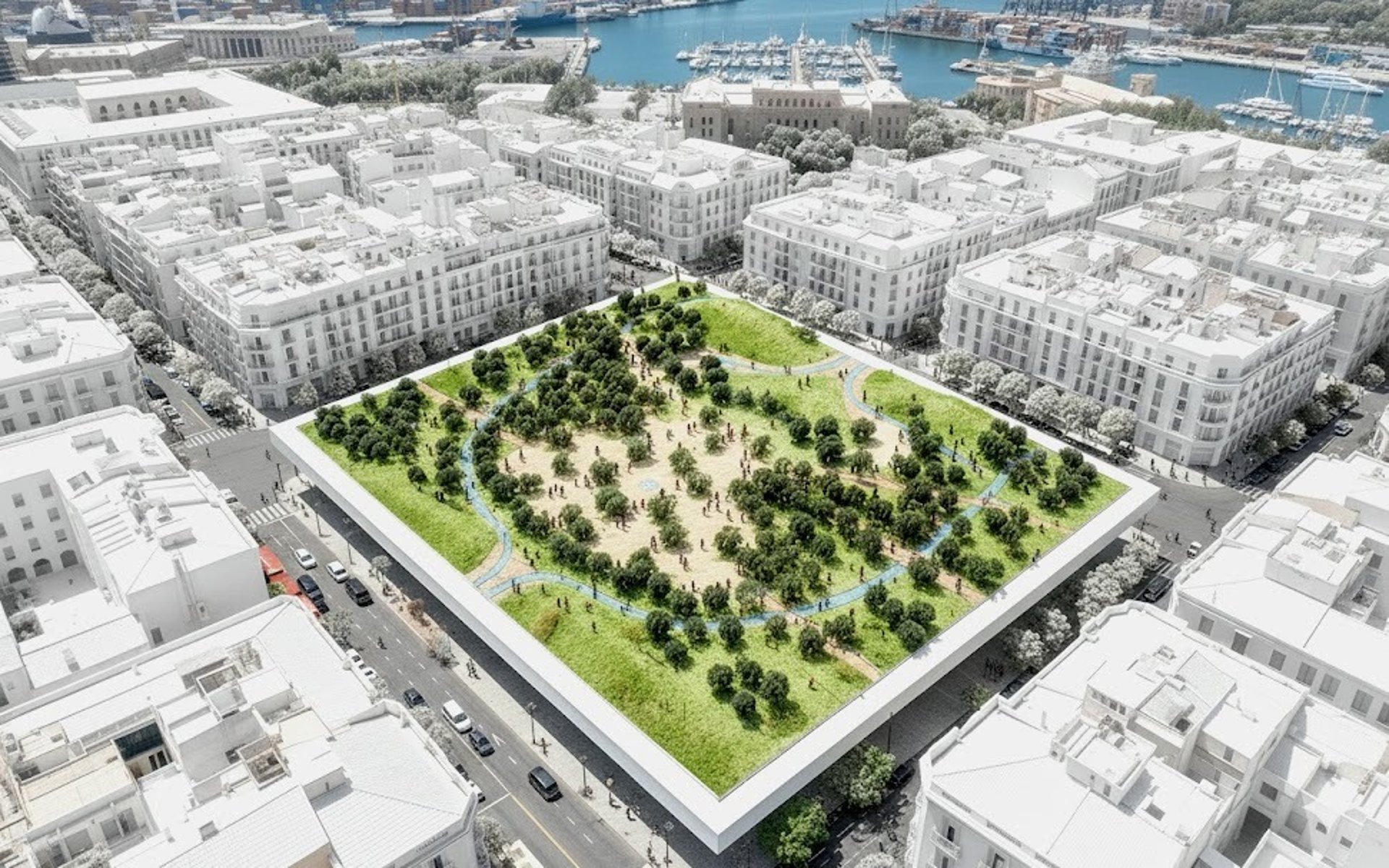 La intervención se centra en ampliar de forma sostenible las zonas verdes, aportando frescor y vitalidad al espacio urbano. El diseño introduce jardines elevados, alineaciones de arbolado mediterráneo y fuentes que evocan dinamismo y movimiento, reforzando la identidad de la plaza como un lugar vivo y representativo.